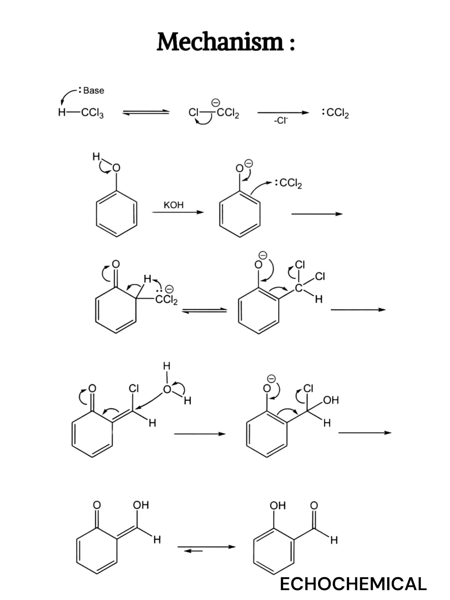 這個反應可以把 苯酚(phenol)轉換成水楊醛(salicylaldehyde),本質上是一種 鄰位甲醛化反應(ortho-formylation)。