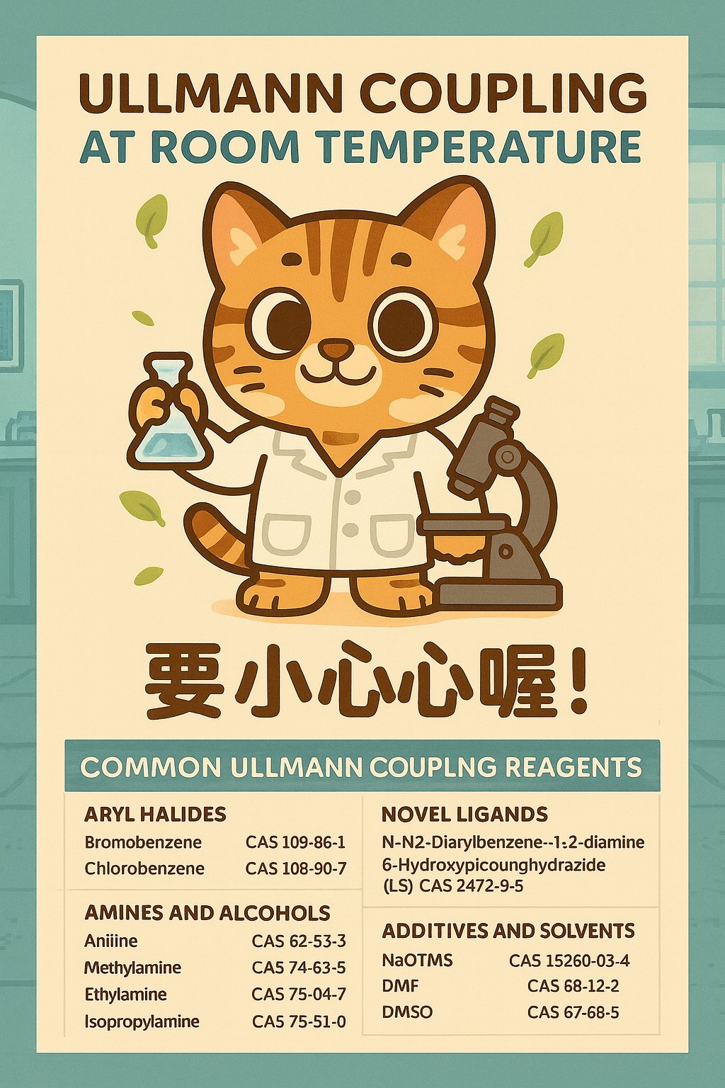 以下整理幾種在室溫 Ullmann 偶聯研究中常見的反應底物、配體與助劑: